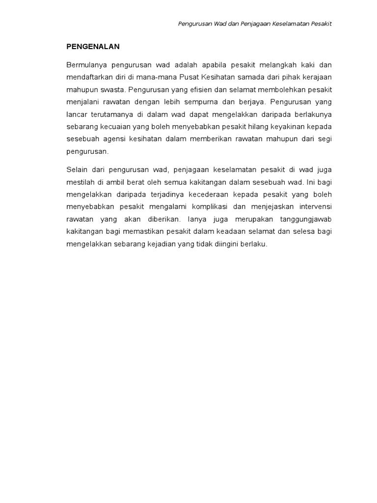 Pengurusan Wad Dan Penjagaan Keselamatan Pesakit Pdf Download
