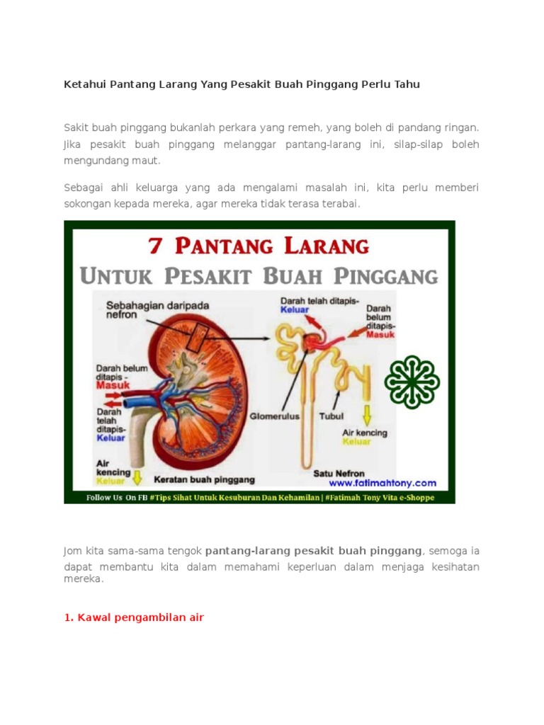 Ketahui Pantang Larang Yang Pesakit Buah Pinggang Perlu Tahu